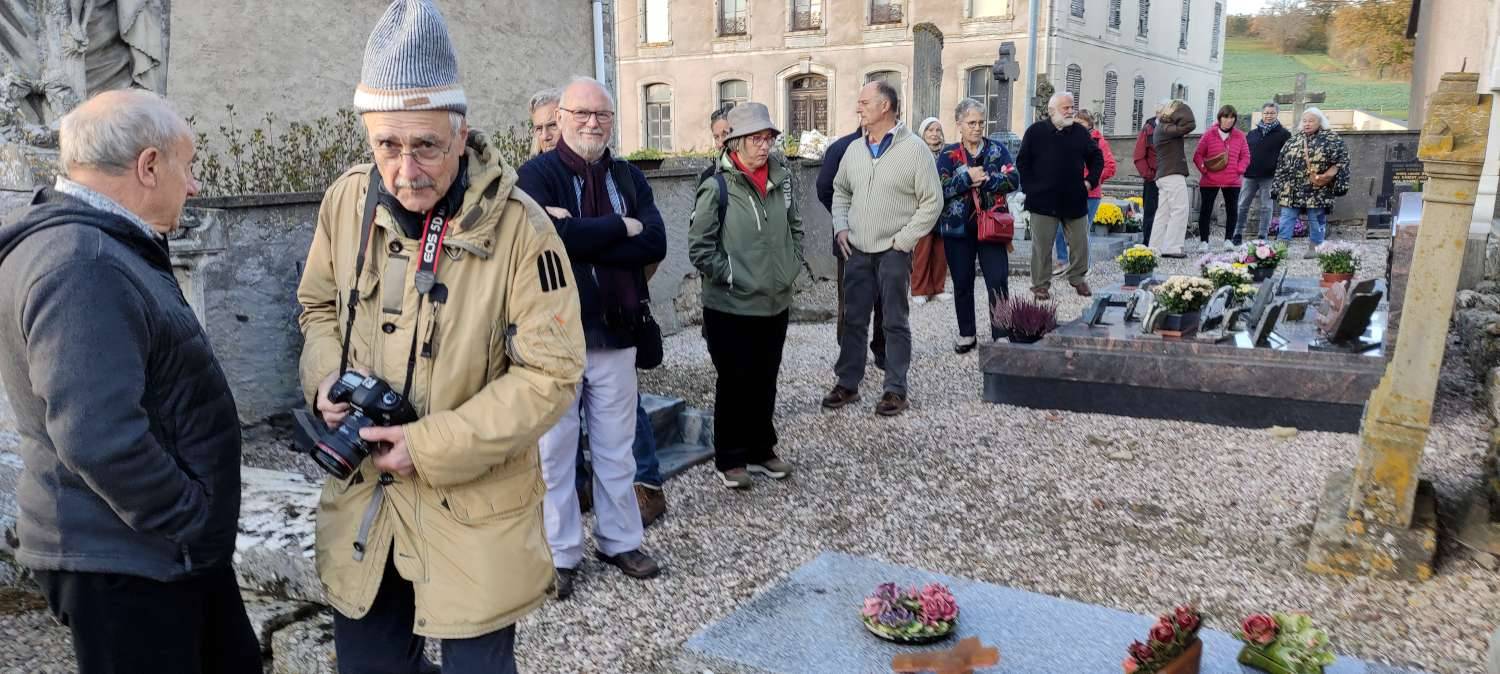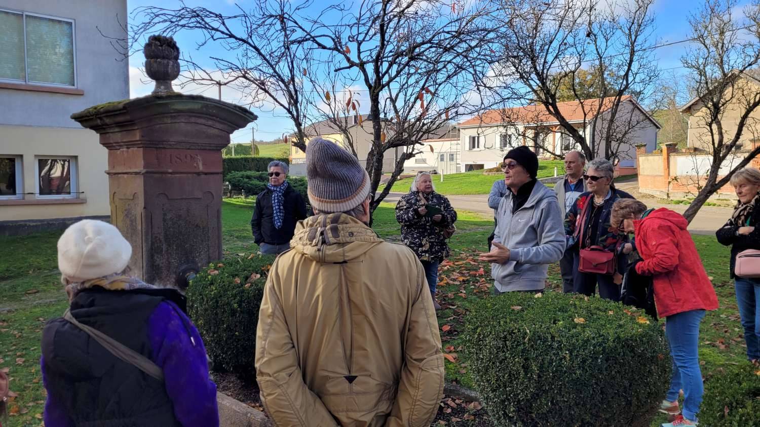 Cliquez pour agrandirLa visite de Wuisse a permis de découvrir la fontaine de 1895, l’église St-Pierre (autels, vitraux, baptistère …) et quelques tombes particulières (Auguste Labroise, tombes militaires …) du cimetière.