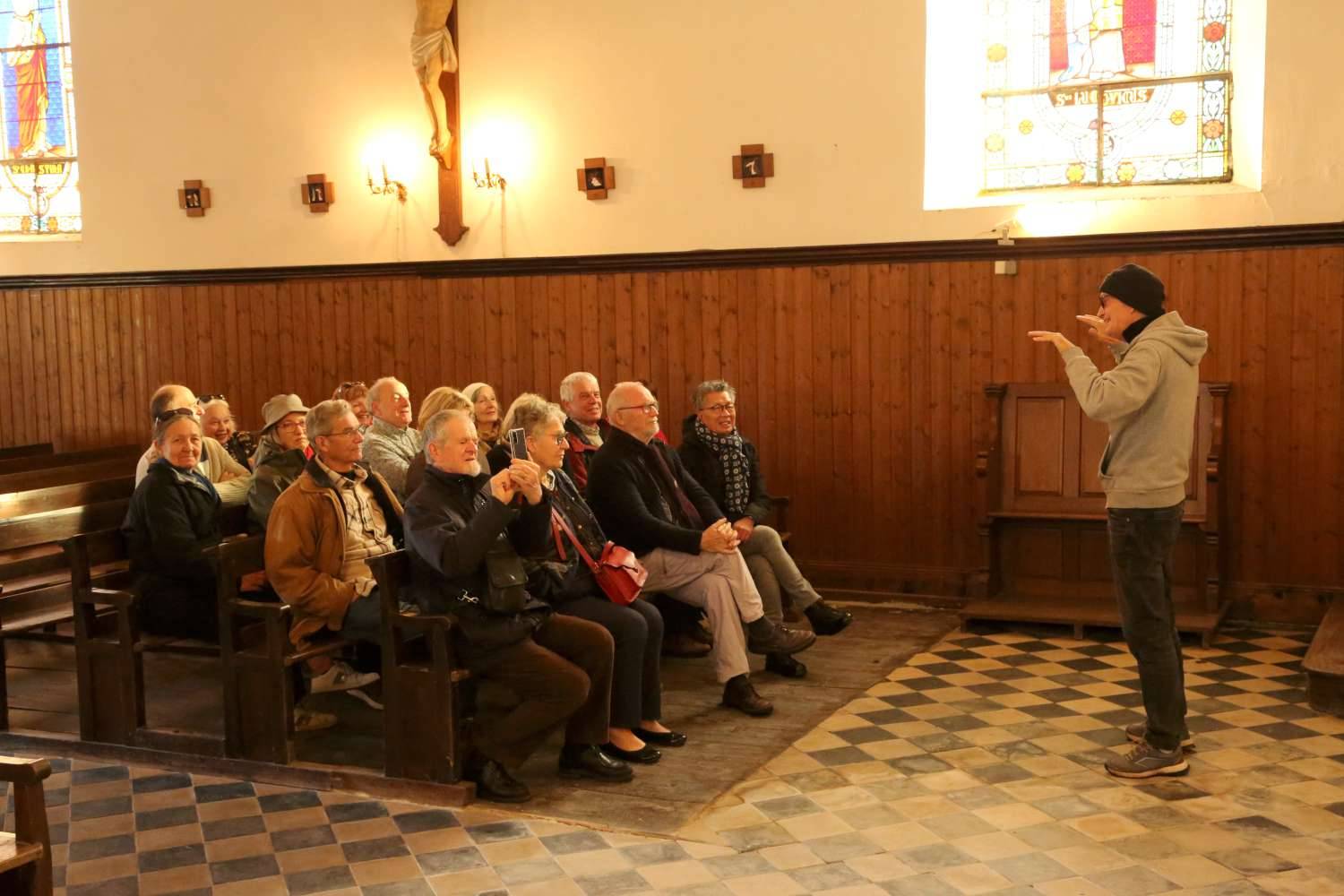 Cliquez pour agrandirLa visite de Wuisse a permis de découvrir la fontaine de 1895, l’église St-Pierre (autels, vitraux, baptistère …) et quelques tombes particulières (Auguste Labroise, tombes militaires …) du cimetière.